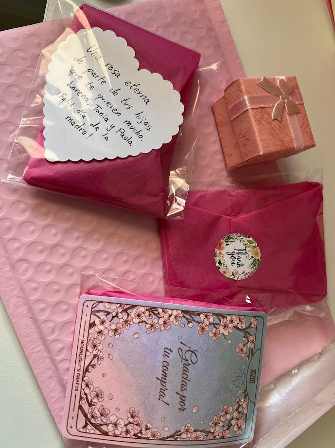 Segundo pedido que hago, las joyas preciosas y la atención inmejorable. Tuvimos un pequeño percance que quedó solucionado inmediatamente. Recomiendo a Moonlight crafts 100%. Gracias.