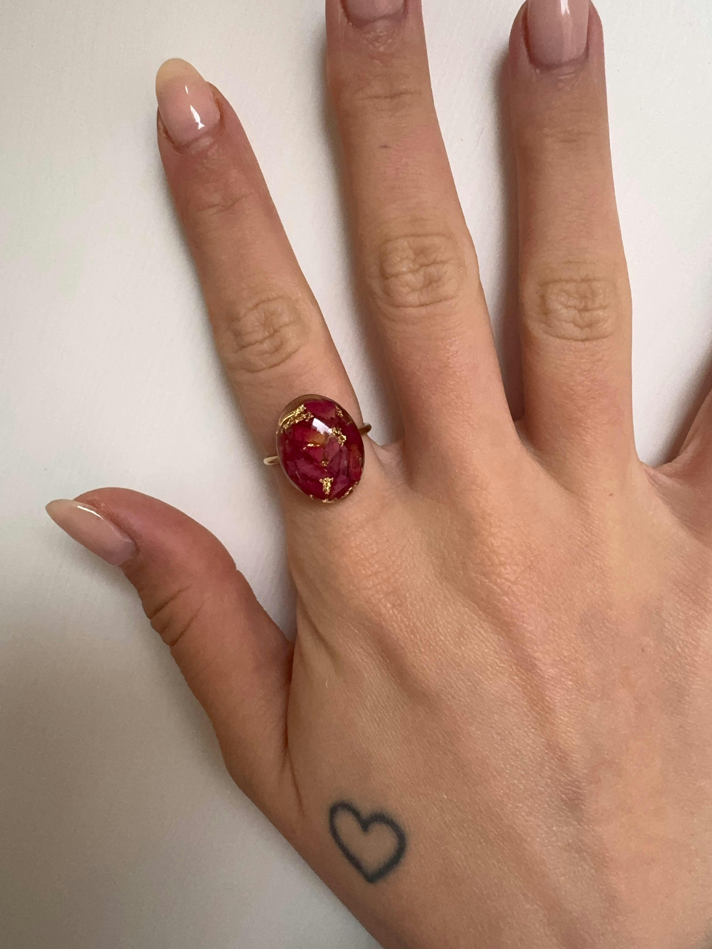 Anillo de la flor de Rosa, secada y encapsulada en resina