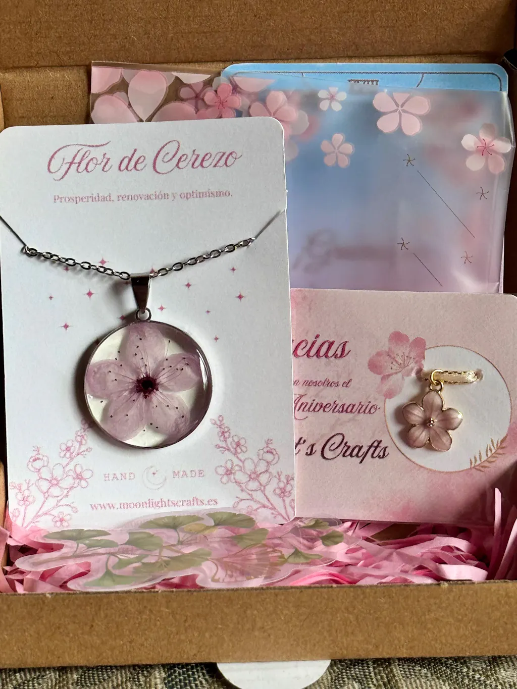Este colgante de flor de cerezo es aún más bonito en persona. 🌸 La flor es muy delicada y con unos tonos rosados preciosos. El empaquetado está súper cuidado y se nota el cariño en cada detalle. Además venía un charm de regalo precioso. ¡Una pieza muy especial! 💗