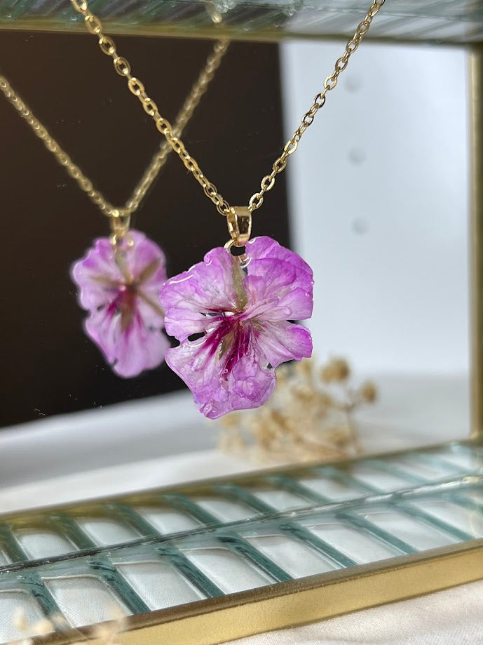 Collar de la flor de Gitanilla, secada y encapsulada en resina