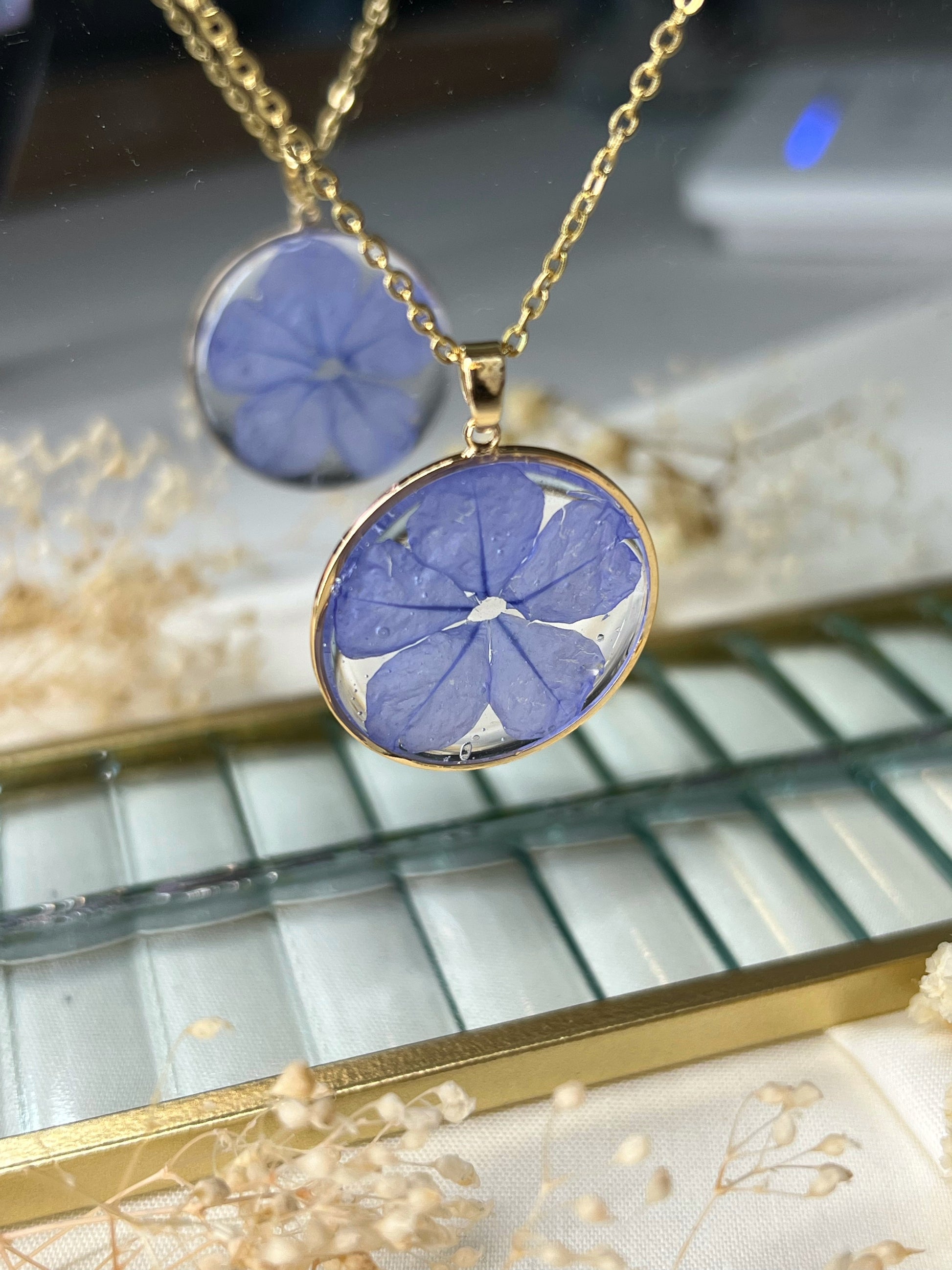 Collar de la flor de Jazmín de Cielo, secada y encapsulada en resina