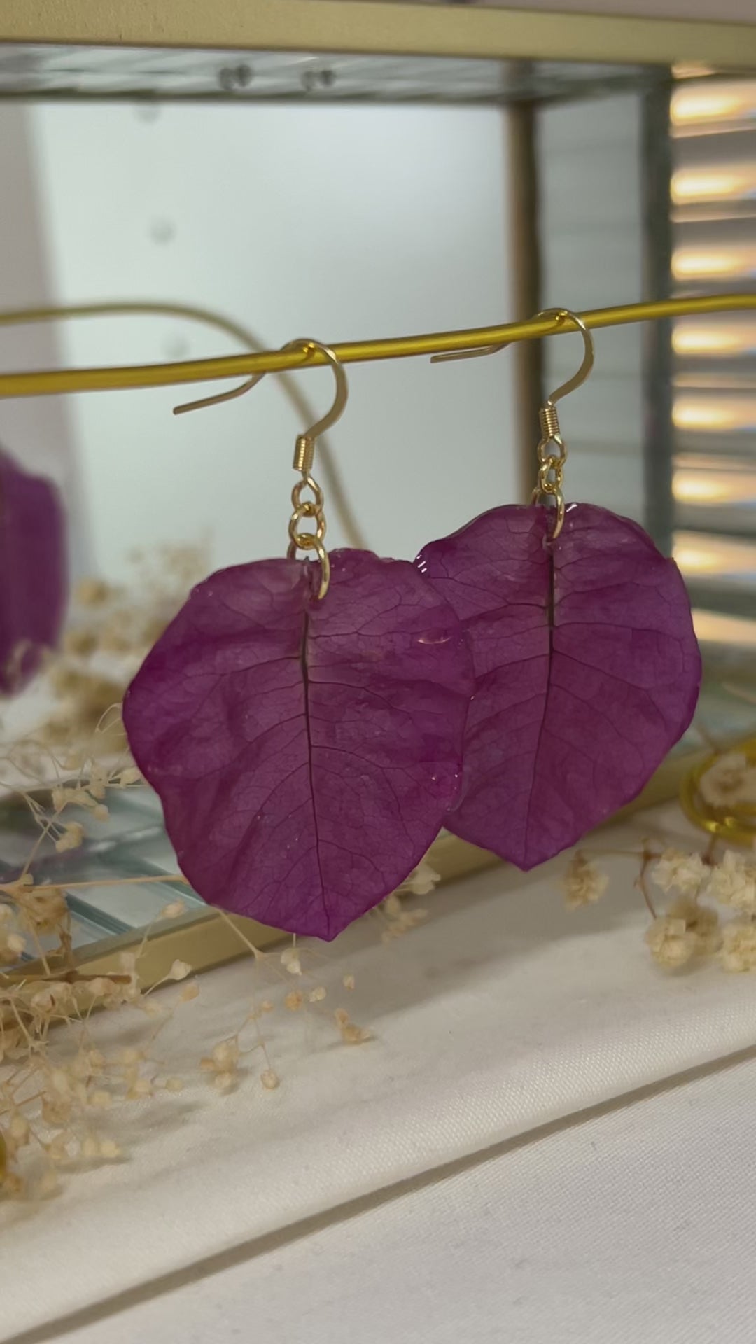 Pendientes de pétalos de la flor Buganvilla, secada y encapsulada en resina